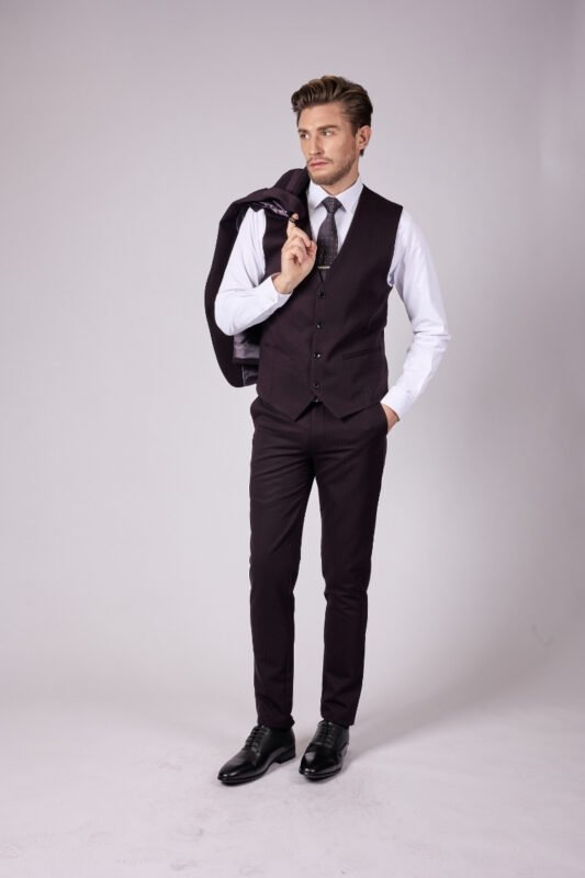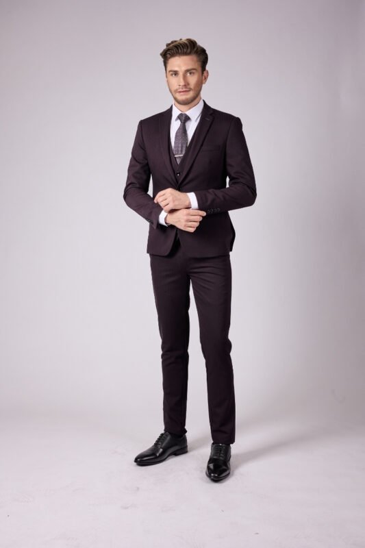 חליפת 3 יחידות בורדו כהה עם פס Super Slim Fit