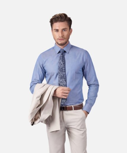 חולצה מכופתרת כחול אפור