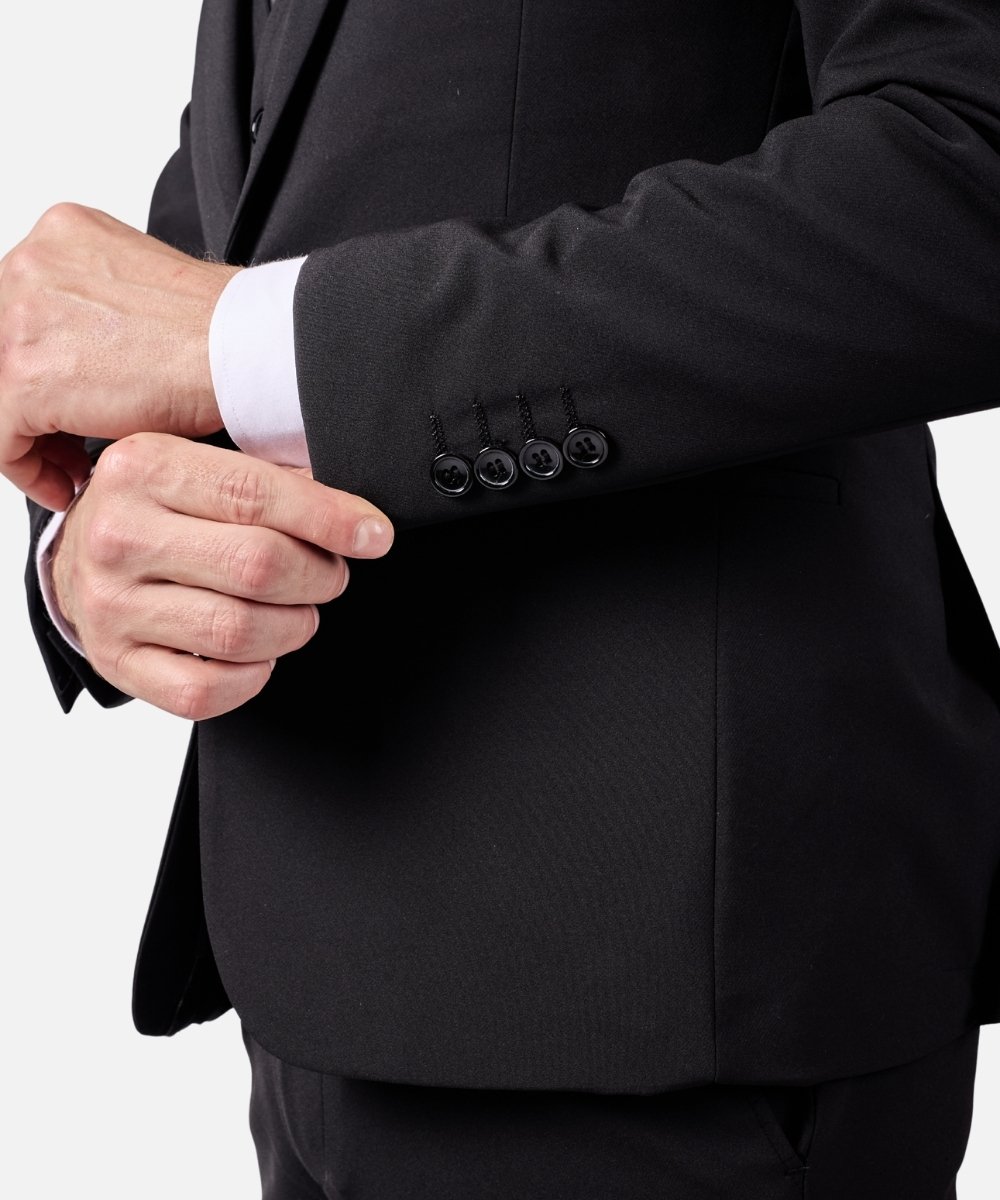 גזרת ה-Super Slim Fit מדגישה את קווי הגוף ומעניקה הופעה אלגנטית, נקייה ומדויקת. הצבע השחור הוא הבחירה הקלאסית והאלגנטית ביותר בעולם החליפות, ומתאים במיוחד לאירועים רשמיים, חתונות, פגישות עסקיות ומראה ערב יוקרתי.