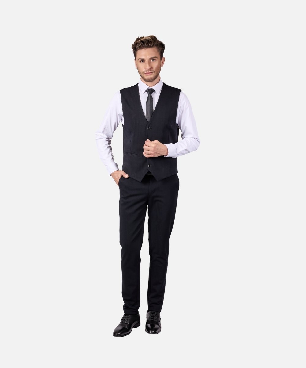 מכנסי גברים אלגנטיים בצבע שחור קלאסי בגזרת Slim Fit, המעניקים מראה מחויט, מודרני ואלגנטי. המכנסיים מתאימים לשילוב עם חליפה, חולצה מכופתרת או בלייזר, ויוצרים הופעה מוקפדת המתאימה גם למראה עסקי וגם לאירועים.